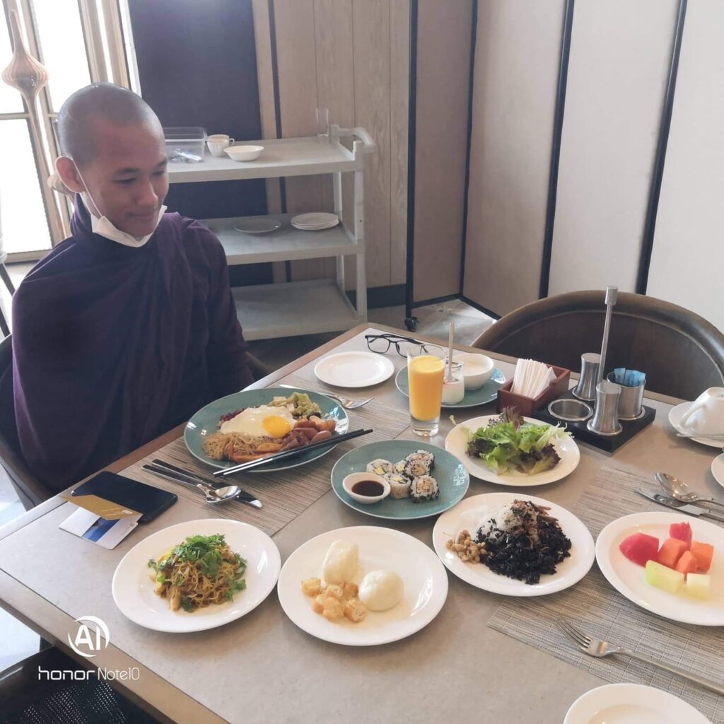 Naing Win還回憶,自己當時是因為室友都出去旅遊了,一個人待在修道院很無聊,才跑到大金塔附近散步,若沒有遇到這位朋友的話,他原本計畫去附近的四星級飯店住上兩晚解解悶,講到這裡,Naing Win秀出了他去各個酒店或高級飯店中享受SPA和美食的自拍照給記者看。