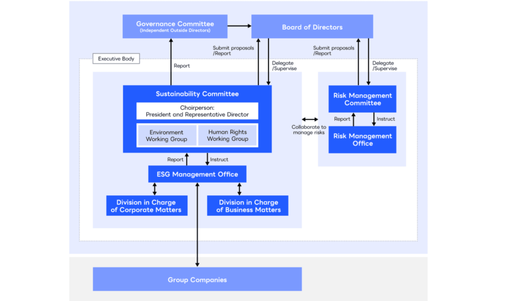 為此,LY Corporation 創立了由董事會親自監督的永續發展委員會,其中包含環境小組和人權小組。此外,為了確保促進永續發展的進度,LY Corporation 已經將永續發展評估作為高階主管薪酬現金獎勵的指標之一。永續發展評估由上一財年的各個實質指標的結果組成,包括實現碳中和的進展、多樣性指標、數據治理等等,目標為實現公司使命和在中長期提升企業價值,並同時幫助 ESG 評級機構的外部評估。