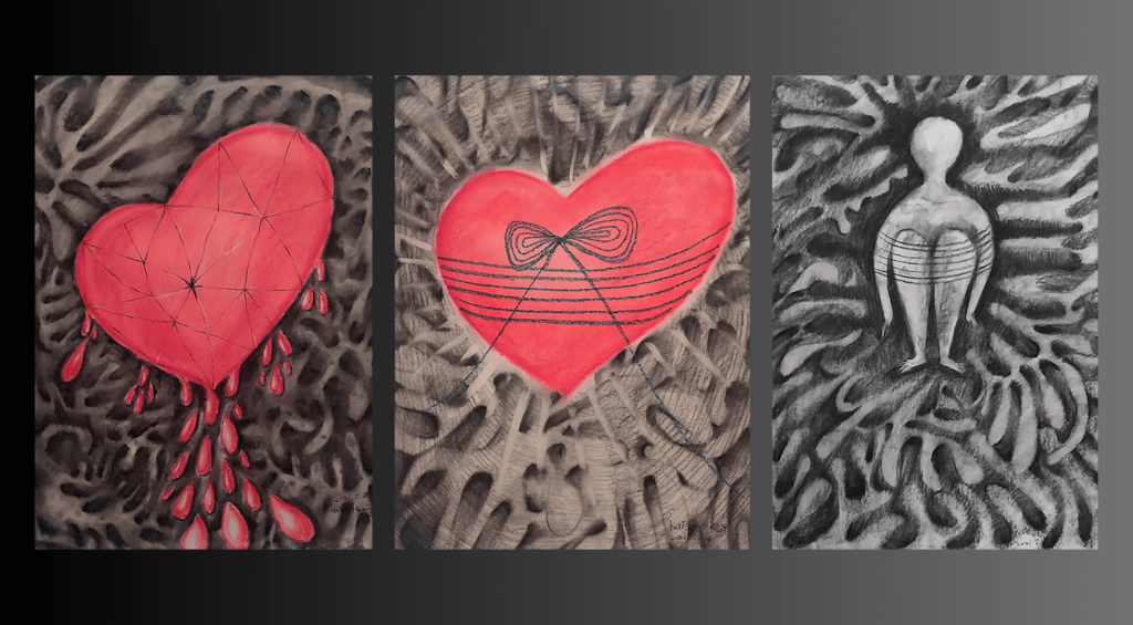 這樣的轉變,被她一筆一筆畫進作品裡——神經元的斷裂與連結、腦波的律動、情緒的顏色——這些畫面看似抽象,實則具象地呈現出她與自己的大腦重新建立關係的過程。每一幅畫,都是一段與神經對話的旅程,也是一場無聲的修復工程。