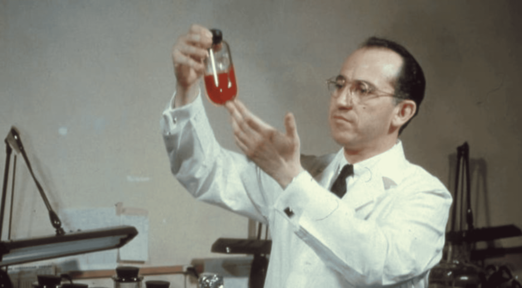 小兒麻痺疫苗的發明者 Jonas Salk,被視為醫學史上的「天選之人」典範。他拒絕為疫苗申請專利,回應大眾一句「太陽能申請專利嗎?」,將個人成就與人類命運緊密相連。許復以此為例,說明「天意」的敘事不是偶然,而是個人行動在時代需要下被放大成為集體信任與使命。(圖:Getty Images)
