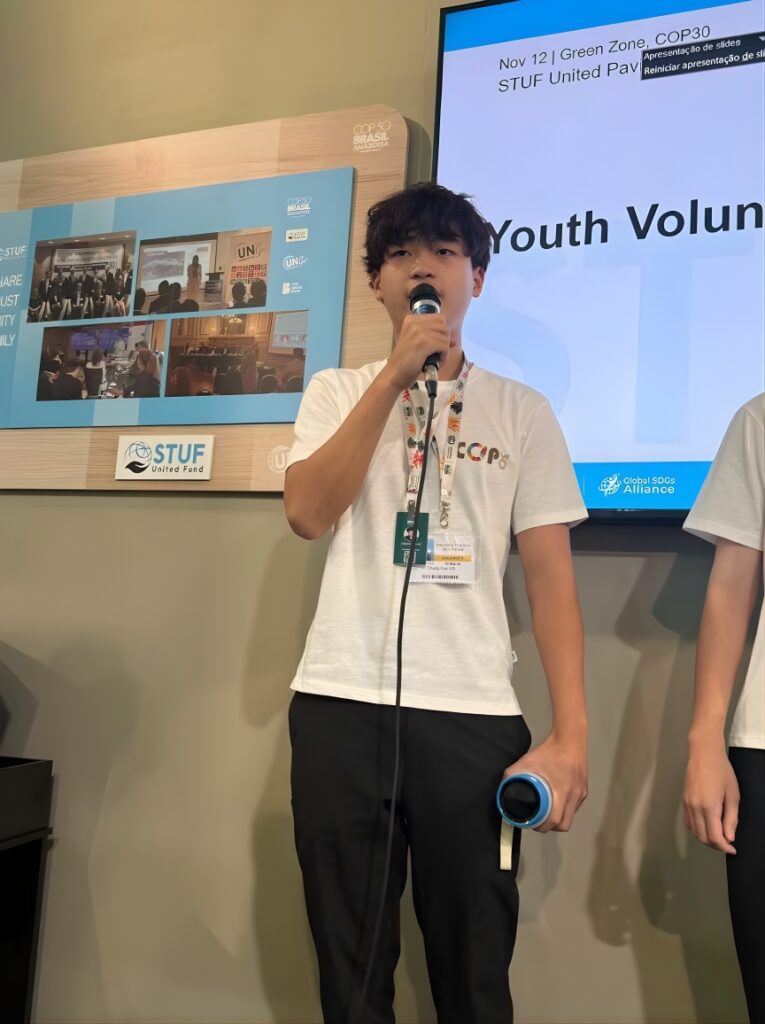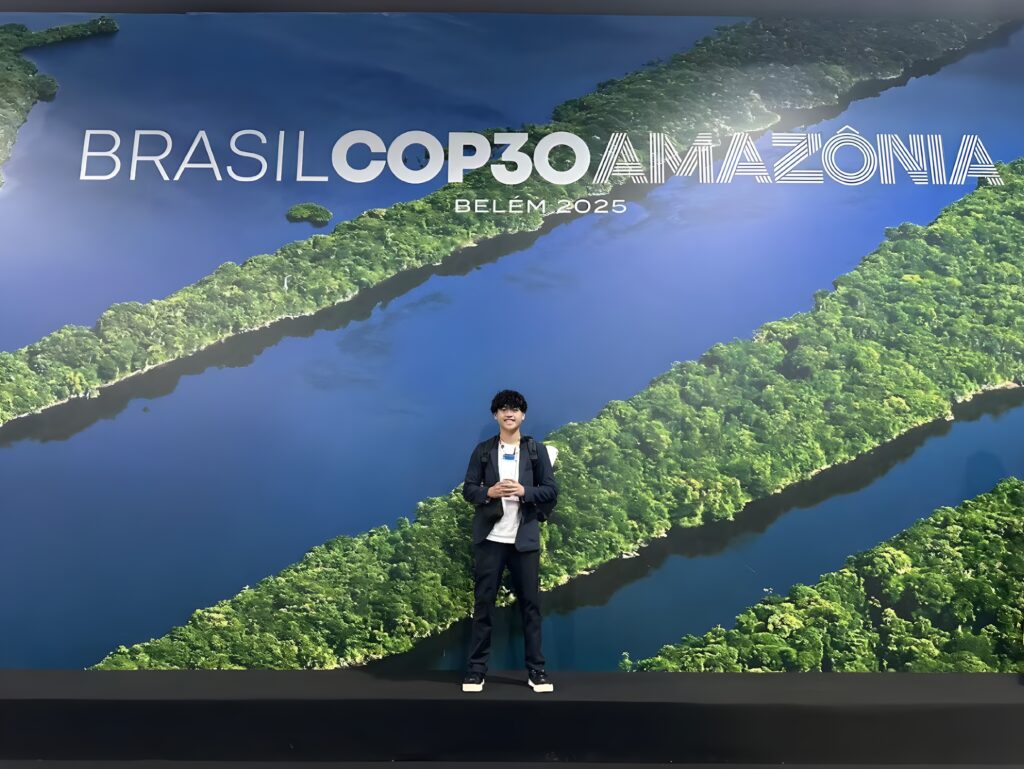 四年後,十六歲的柯晟睿(RayKo)站上《聯合國氣候變化綱要公約》第三十次締約方大會(COP30)的會場講台。今年的舉辦地,是巴西貝倫(Belém),在這全球目光匯聚的全球盛事,各國政要、青年代表與國際媒體齊聚一堂。青年論壇講台上的柯晟睿,語氣不急不緩,卻展現了讓人印象深刻的真摯: